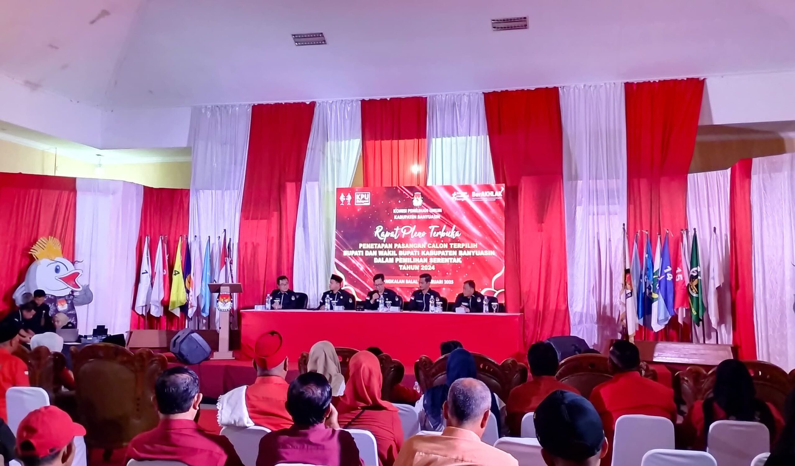 Banyuasin,beritamedianusantara.com- Penjabat Bupati Banyuasin Muhammad Farid, S.STP M.Si didampingi sejumlah Kepala Perangkat Daerah (KPD) Banyuasin, menghadiri pembukaan Ceremonial Rapat Pleno Terbuka penetapan Pasangan Calon terpilih hasil Pemilihan Bupati dan Wakil Bupati Banyuasin serentak yang digelar oleh Komisi Pemilihan Umum (KPU) Kabupaten Banyuasin Rabu (05/2/2025).