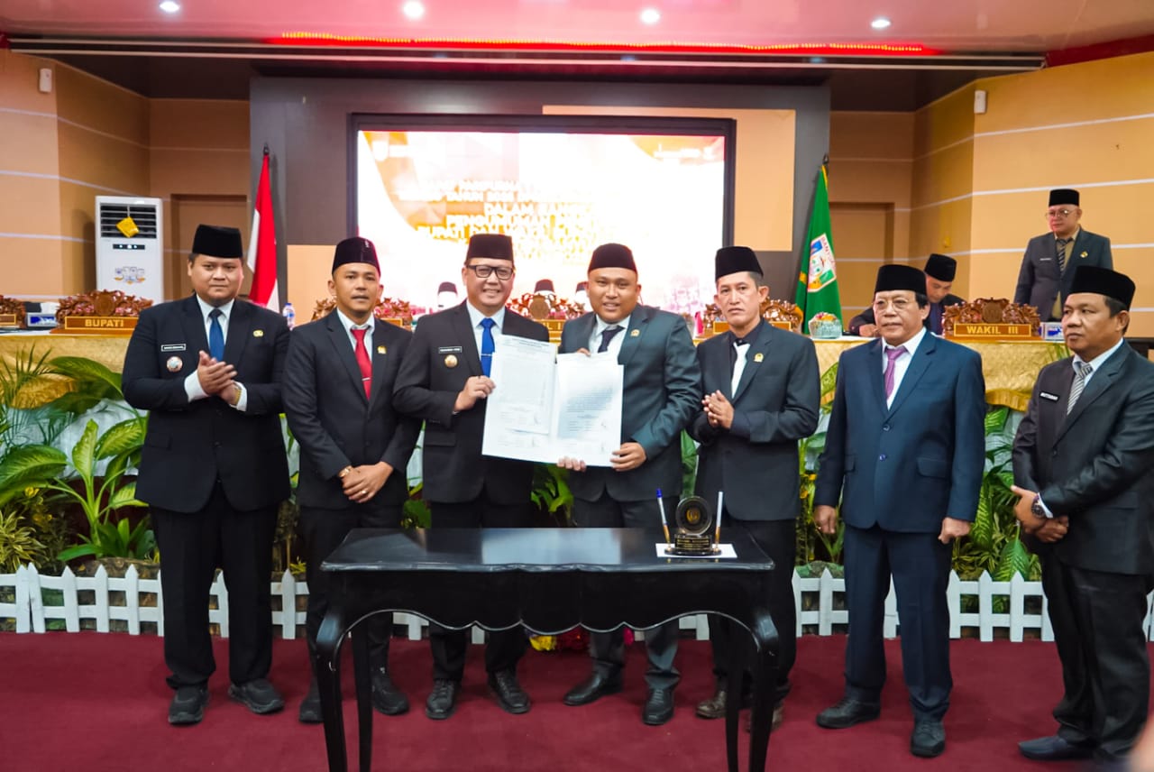 Diawali dengan Ketua KPU Banyuasin, Aang Midharta, ST menyampaikan surat keputusan tentang Bupati Banyuasin terpilih, Dr. H. Askolani, SH., MH dan Wakil Bupati Banyuasin terpilih, Netta Indian, SP periode 2025-2030.