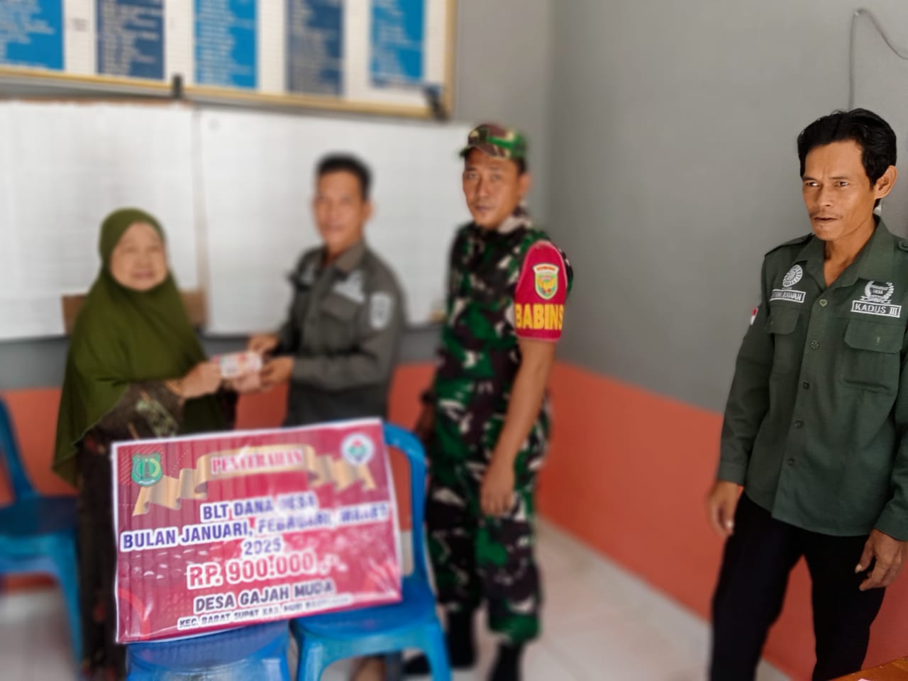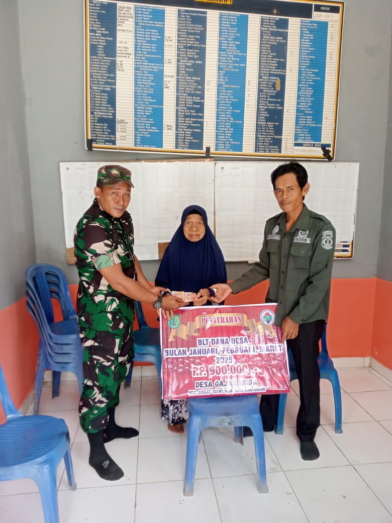 Pembagian BLT-DD Triwulan Satu yang dilaksanakan di Kantor Desa Gajah Muda yang dihadiri Kepala Desa Gajah Muda dan perangkat, Babinsa, BPD, LPM dan dari KPM.