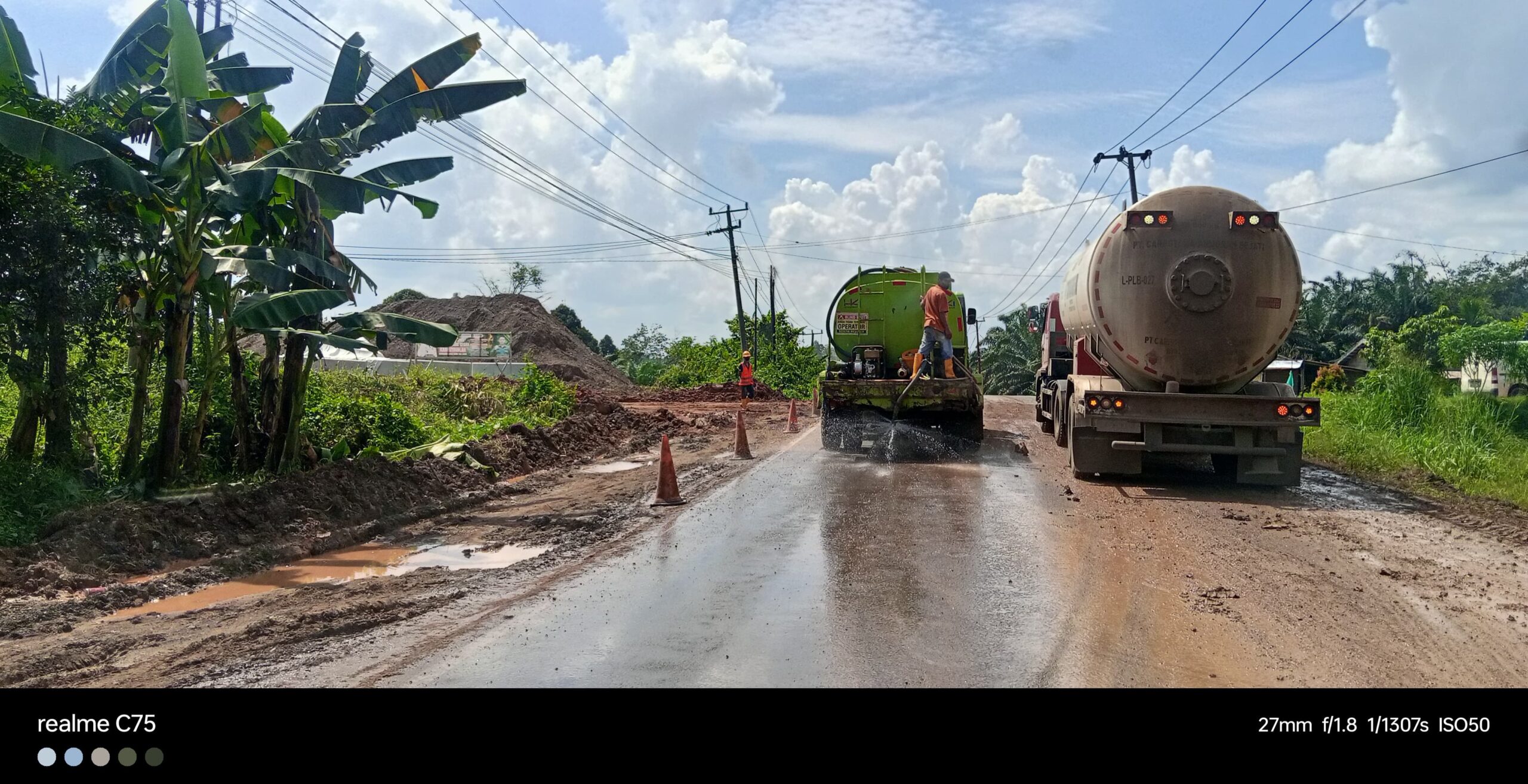 “Tanah yang terlepas dari rodanya kendaraan proyek tersebut jatuh ke aspal, kemudian harus disiram dengan kendaraan tangki. Hal itu akibatnya, tanah tersebut menjadi licin dan tentunya dikawatirkan membahayakan aktivitas kami pak,” jelasnya.