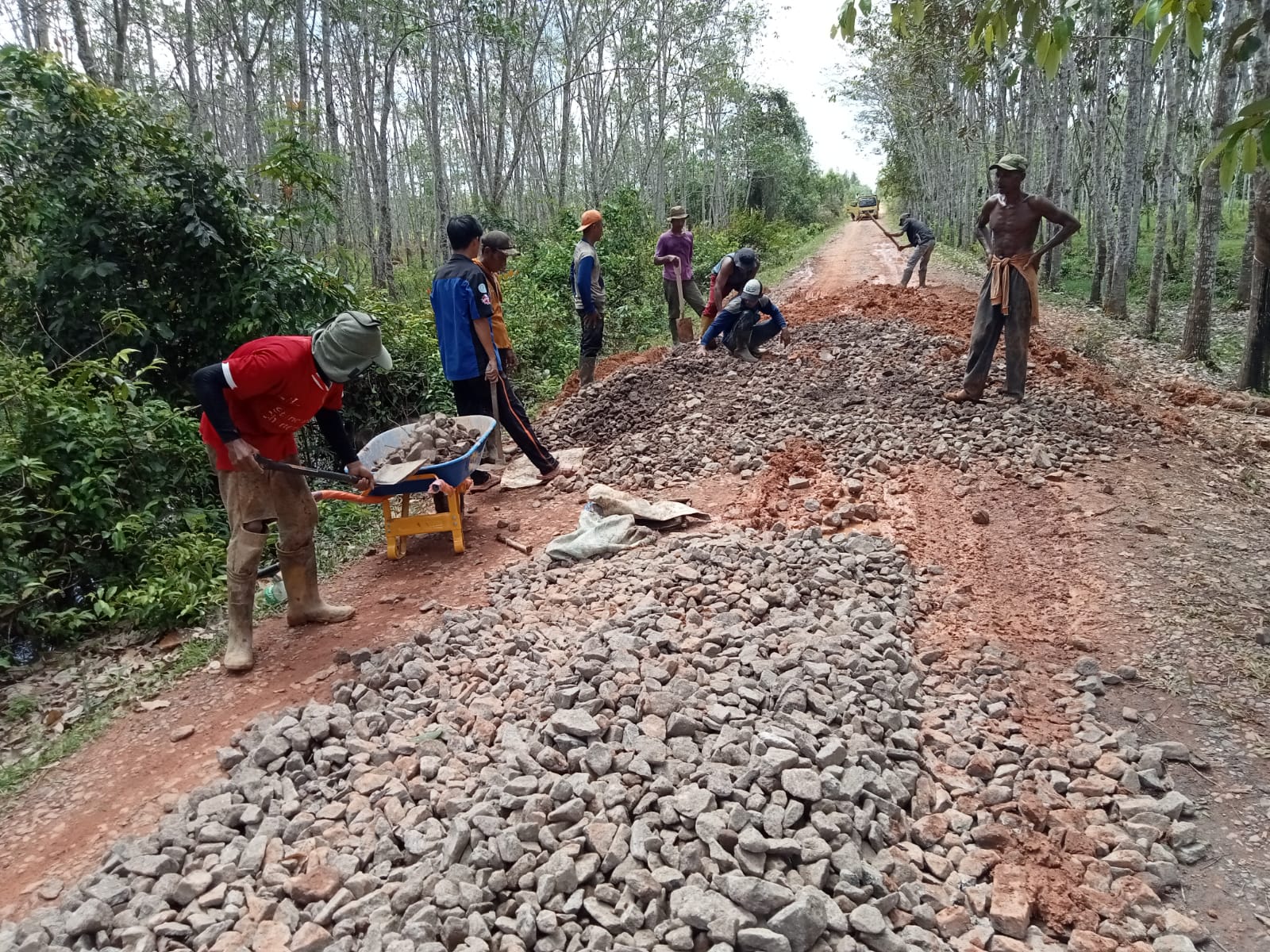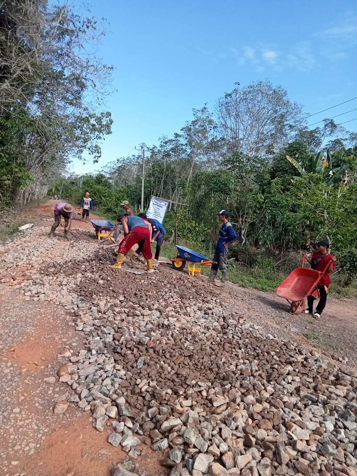 Banyuasin,beritamedianusantara.com- Memperlancar aktivitas perekonomian masyarakat khusus bagi warga Desa Pulau Muning Kecamatan Sembawa Kabupaten Banyuasin Provinsi Sumsel melalui Dana Desa (DD) TA 2025 Pemdes Pulau Muning melakukan penghamparan batu pecah di ruas jalan Dusun 1 RT 1.