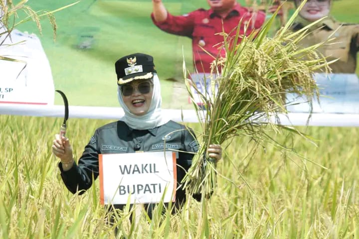 Hal ini disampaikan Wakil Bupati Banyuasin Netta Indian, SP dalam Panen Padi IP 100 dan Persiapan Olah Lahan IP 200 bersama masyarakat Desa Sungai Dua Kecamatan Rambutan, (27/08/2025).