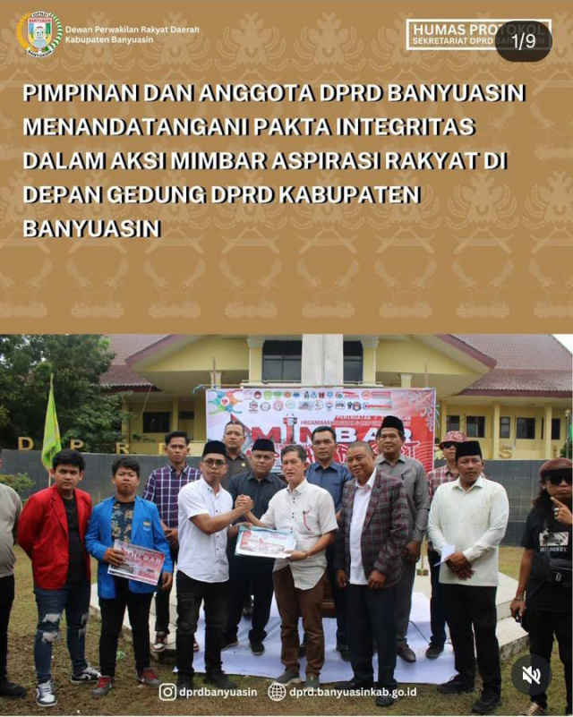 Aksi ini turut disaksikan oleh berbagai elemen masyarakat, mulai dari organisasi mahasiswa, organisasi masyarakat, hingga insan pers, yang secara langsung menyuarakan aspirasi serta mendukung langkah DPRD Banyuasin dalam mewujudkan pemerintahan yang bersih dan responsif terhadap kebutuhan rakyat.