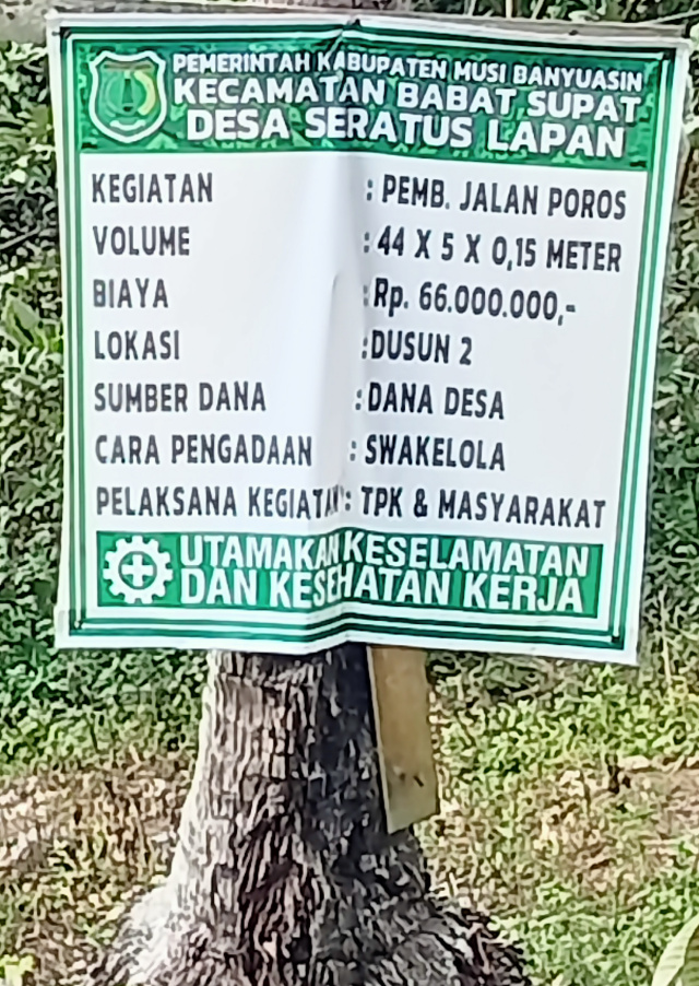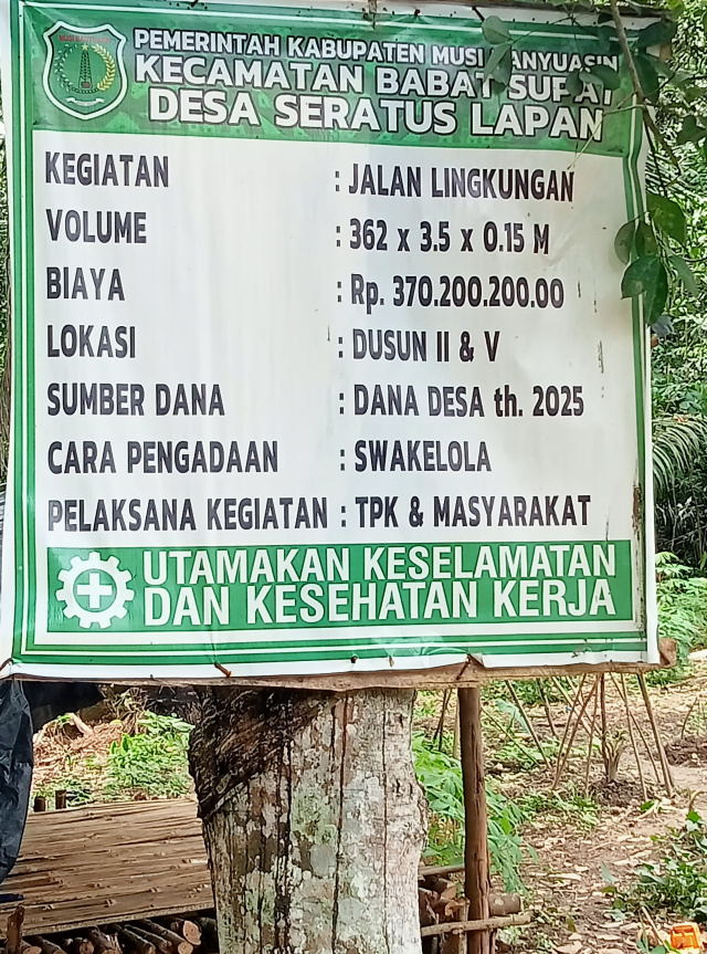Muba,beritamedianusantara.com- Melalui anggaran Dana Desa (dd) 2025, Pemerintah Desa (Pemdes) Seratus Lapan Kecamatan Babat Supat Kabupaten Musi Banyuasin (Muba) Provinsi Sumatera Selatan (Sumsel) telah membangun jalan lingkar dari Dusun menuju Dusun 5.