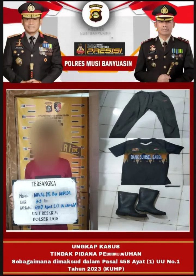 Kapolsek Lais AKP Syawaluddin, S.H mewakili Kapolres Muba melalui Kasi Humas Polres Muba IPTU Hutahean, S.M membenarkan berhasil pengungkapan kasus itu. Dikatakannya, tersangka menyerahkan diri pada Jum’at (2/1/2026) sekira pukul 06.00 WIB setelah tau dirinya dicari aparat kepolisian.